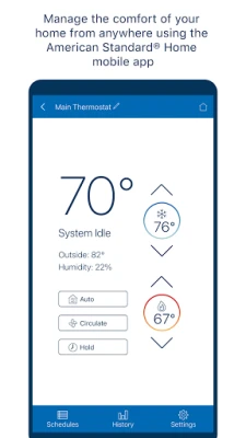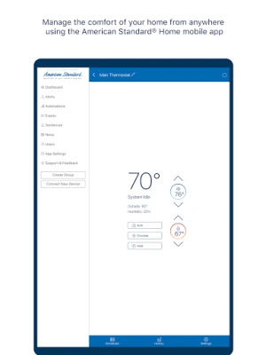 The American Standard® Home app allows you to optimize the comfort and efficiency of your home by connecting directly to your American Standard smart thermostat.