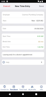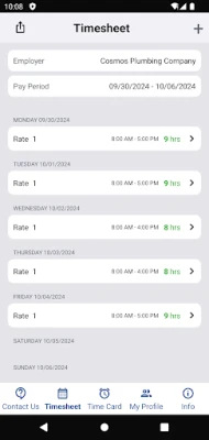 This app provides a timesheet for employees and employers to record work time and calculate pay. It also performs overtime pay calculations at a rate of one and one-half times (1.5) the regular rate of pay for all hours you work over 40 in a workweek.