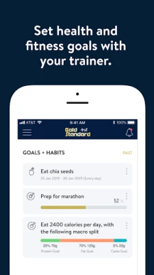 With the Gold Standard Health App, you can start tracking your workouts and meals, measuring results, and achieving your fitness goals, all with the help of your personal trainer.