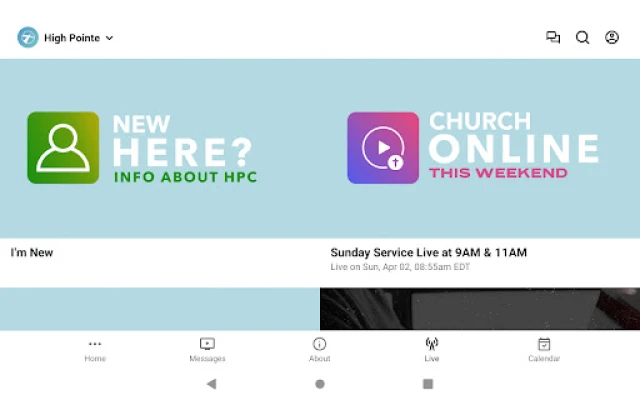The High Pointe Church App was created with the Subsplash App Platform.
