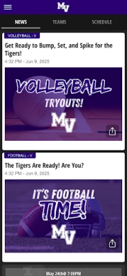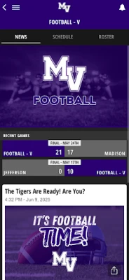 The MV Tigers App features: + Athletic Program and Team News Feeds + Scoreboard with Results and Upcoming Schedule + Score Updates and Push Notifications + Team Rosters and Schedules