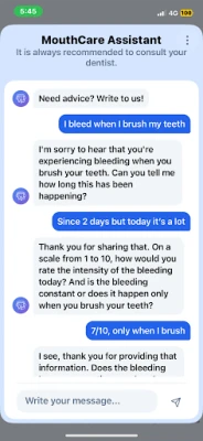 - Customized Oral Health Guidance: Receive personalized tips and techniques for daily oral care, including the selection of the right toothbrush (manual or electric), the most effective brushing methods, and the importance of interdental cleaning. MouthCare tailors advice to your unique needs, ensuring your oral health routine is as effective as possible.