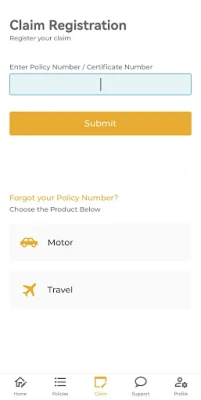 View all your registered policies File your travel or motor claims Talk to our customer support via LiveChat