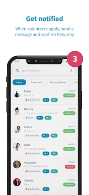 - Stay informed: Get notifications when volunteers apply, reply to you or confirm their stay